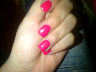 A körmömet egyébként husiszínű körömágyhosszabbító zselével építettem, erre jött rá a sima lakk. Azért szeretem ezt a megoldást, mert nálam a lakk fél óráig kifogástalan, ( vagy már akkor sem, mert 10ből 9szer belenyúlok) utána lepattog, és ezt nem bírom elviselni. Zselére kenve viszont nagyon tartós.