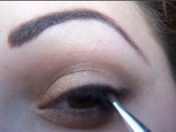 2. Ezután egy barna szemceruza segítségével kiemeltem a mélyítővonalat, és a külső ,,V"-t. Nem kell, hogy tökéletesen sikerüljön, mert utána eldolgozzuk.